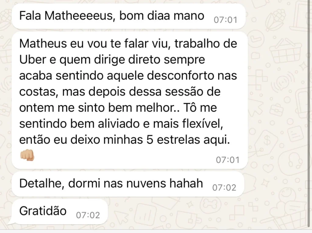 Meu nome é Matheus, sou quiroprata, especialista em liberação miofascial e pontos gatilho há anos.